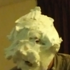 Splat! they receves a paper plate with shaving cream right in the face, and sometime in the hair.