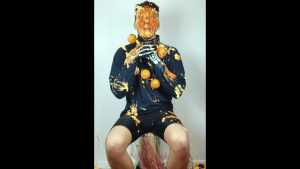 Our Halloween idiot ends up completely trashed, with a disgusting mix. But he deserves it! he even deserves to be humiliated like this on every occasion!
