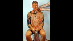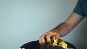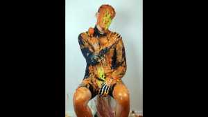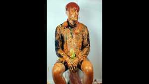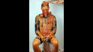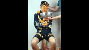 Finally, all this mixed mess is spread over him: he receives a messy massage and a messy shampoo, completely disgusting and sticky!